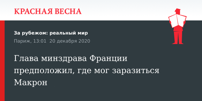 Местом заражения коронавирусной инфекцией президента Франции Эммануэля Макрона мог стать Европейский совет, предположил министр здравоохранения Франции Оливье Веран, 18 декабря передает агентство Le Parisien.