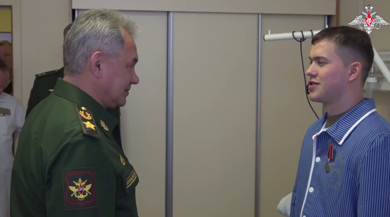 Глава военного ведомства посетил военнослужащих-участников спецоперации, находящихся на лечении в Национальном медицинском исследовательском центре высоких медицинских технологий — Центральном военно-клиническом госпитале имени А. А. Вишневского, и вручил им ордена Мужества, медали «За Отвагу» и Суворова.