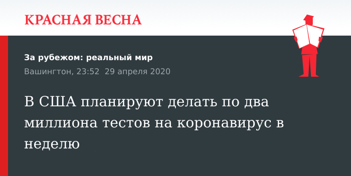 По два миллиона тестов на коронавирус в неделю будут делать в США к началу мая, 29 апреля заявил вице-президент Майк Пенс на совещании в Белом доме.
