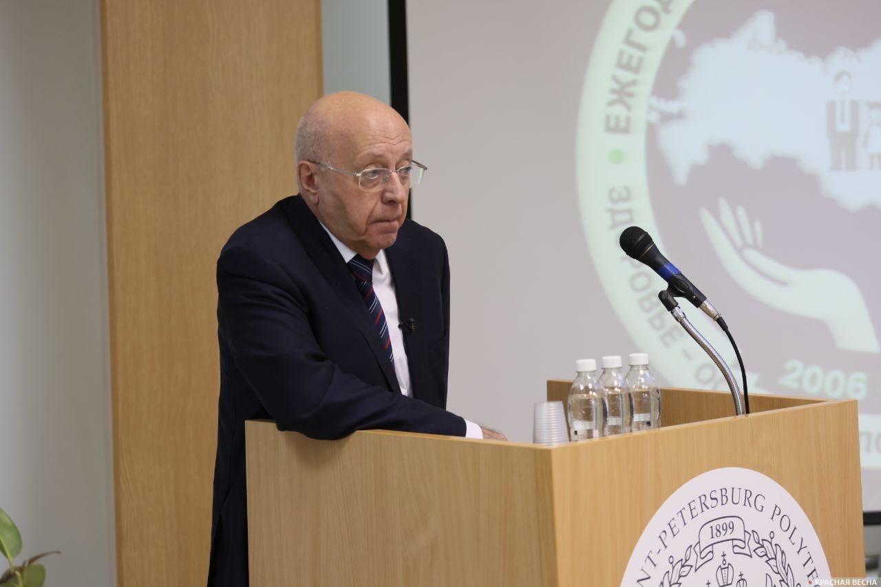 Выступая с докладом «Новые мировые тенденции и их влияние на то, что происходит в нашей стране», Кургинян отметил, что «в регрессивном обществе <…> место этого интеллектуального класса, научно-производительного (медицина есть часть этой интеллектуальной отрасли) — его место, прошу прощения, у параши».