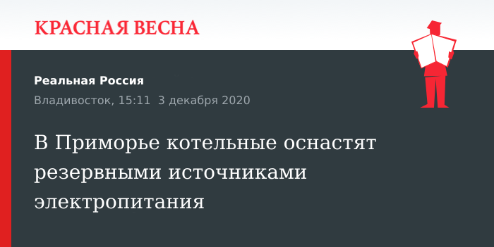 «Практика показала, что наиболее надежно отреагировала система там, где стояли дизель-генераторы. Поэтому посмотрите внимательно, на всех ли котельных, насосных станциях, лечебных учреждениях с реанимационными койками имеются резервные источники. Особое внимание на это нужно обратить водоканалу и Примтеплоэнерго», — отметил Кожемяко.