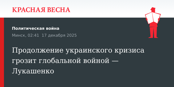Продолжение украинского кризиса грозит глобальной войной — Лукашенко