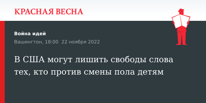 А это означает, что свободы слова лишатся в первую очередь те, кто будет публично возмущаться нездоровой фиксацией на сексуальности детей, то есть педофилии, и бить тревогу из-за того, что в американских больницах несовершеннолетним проводят мастэктомии и операции на гениталиях, уродуя их на всю жизнь, уверен ведущий. Однако говорить во всеуслышанье о такого рода преступлениях — это не значит разжигать гомофобию или говорить что-то плохое о геях, подчеркивает он.