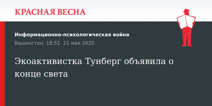 Объявление о конце света в новом клипе американской рок-группы Pearl Jam представила шведская экологическая активистка Грета Тунберг, выступив в роли ясновидящей, 20 мая сообщает французская газета Le Figaro.