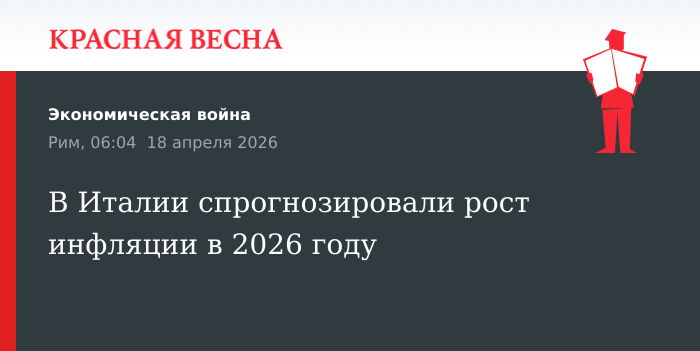 Прогноз по инфляции в Италии на 2026 год представил Национальный институт статистики (Istat) 18 апреля, сообщает Ansa.