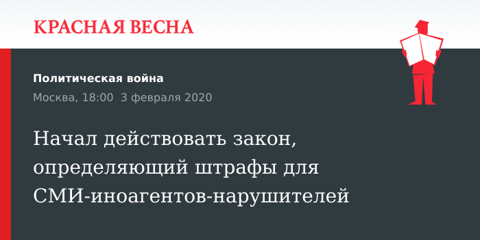 Закон установил размеры штрафов, накладываемых на физических и юридических лиц, нарушивших порядок «деятельности иностранного средства массовой информации, выполняющего функции иностранного агента, и (или) учрежденного им российского юридического лица, выполняющего функции иностранного агента».