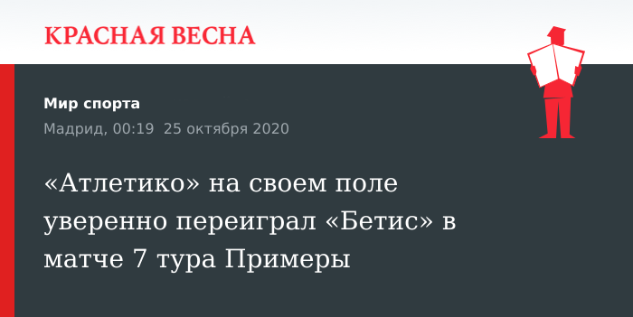 Победу над «Бетисом» одержал «Атлетико» 24 октября в матче 7 тура испанской Примеры.