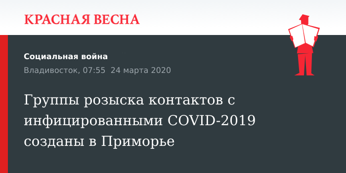 Группы розыска контактировавших с заболевшими коронавирусной инфекцией созданы в Приморье из сотрудников полиции, Роспотребнадзора и МФЦ, 24 марта сообщила пресс-служба правительства Приморского края.