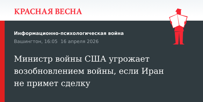 Министр войны США угрожает возобновлением войны, если Иран не примет сделку