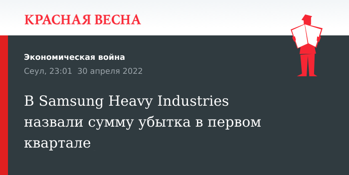 Около $83 млн составил чистый убыток Samsung Heavy Industries в первом квартале 2022 года, 29 апреля сообщает Yonhap.