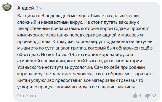 Также в комментариях пояснили, что сроки испытания вакцин значительно ниже сроков проверки новых лекарственных препаратов.