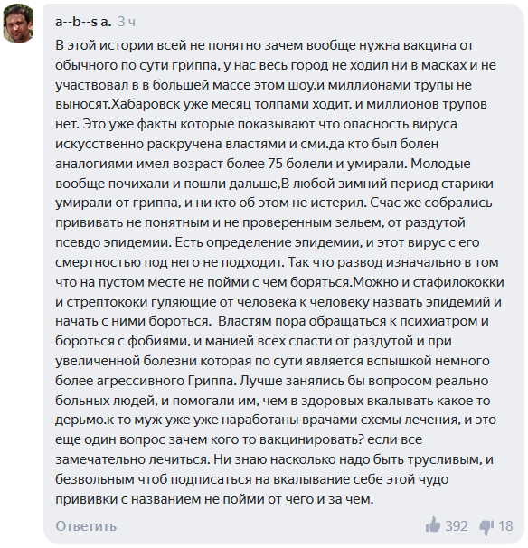 Часть комментаторов убеждена, что вакцина от коронавируса вообще не нужна, так как опасность новой инфекции сильно преувеличена.
