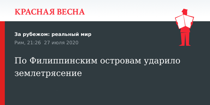 Землетрясение магнитудой 6,1 балла произошло недалеко от Филиппинского архипелага 27 июля, сообщает Европейско-Средиземноморский сейсмологический центр.