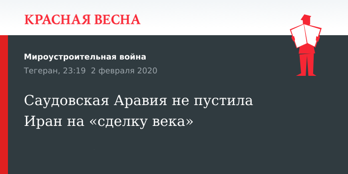 Напомним, во второй половине января Иран и Саудовская Аравия обменялись сообщениями о взаимной готовности к переговорам. Но 30 января посол Ирана в Великобритании сделал резкое заявление, назвав Саудовскую Аравию главным источником нестабильности в арабском мире.