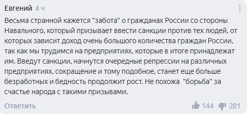 Пользователи Сети оценили предложение Навального ввести еще санкции