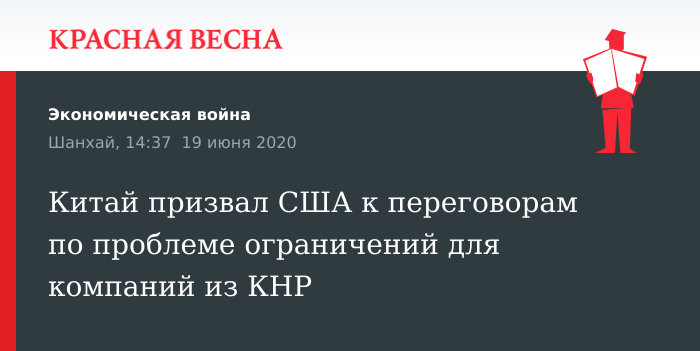 Китай призвал договариваться с США о решении проблемы размещения акций компаний из КНР на американском фондовом рынке, заявил заместитель главы Комитета по контролю за ценными бумагами КНР Фан Синхай 18 июня, сообщает китайский информационный ресурс «Ицай глобал».