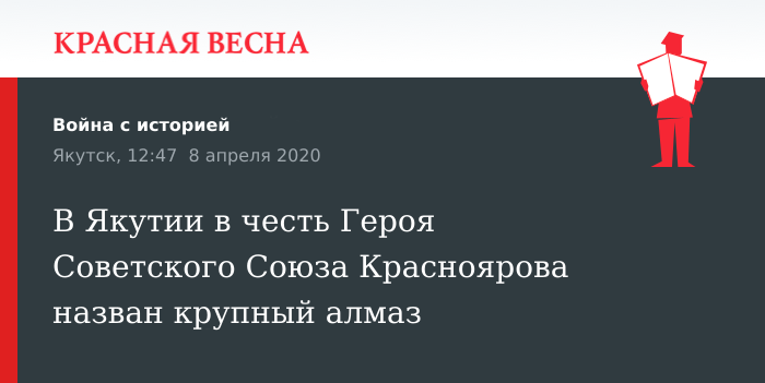 В Якутии в честь Героя Советского Союза Красноярова назван крупный алмаз