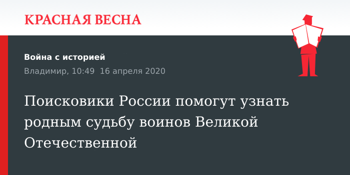 Проект «Судьба солдата онлайн» стартовал на сайте «Поисковое движение России», сообщает 15 апреля комитет по молодежной политике Владобладминистрации.