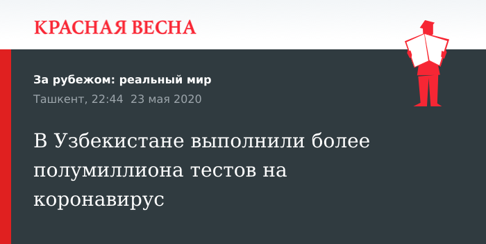 Напомним, по состоянию на 23 мая в Узбекистане проходят лечение от коронавирусной инфекции 573 человека, включая четверых человек в тяжелом состоянии. Победили болезнь 2492 заболевших, 12 человек погибли.