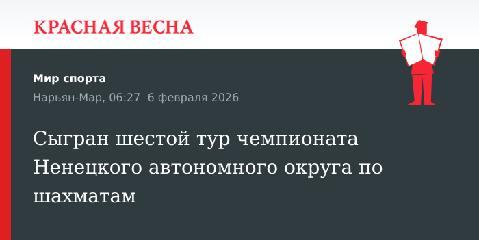 Единоличным лидером в чемпионате Ненецкого автономного округа по шахматам в Нарьян-Маре остается Рафаил Румянцев после шестого тура 5 февраля, итоги тура опубликованы на специализированном сервере шахматных результатов chess-results.com.