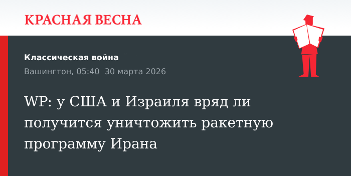 Ракетная программа Ирана уцелела после американо-израильских ударов, пишет 30 марта газета The Washington Post.