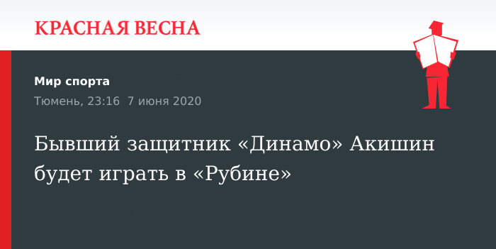 Бывший защитник «Динамо» Акишин будет играть в «Рубине»