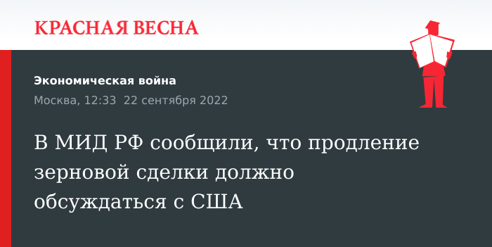 В МИД РФ сообщили, что продление зерновой сделки должно обсуждаться с США