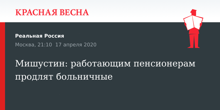 Дистанционная выдача больничных листов для работающих пенсионеров продлится до 30 апреля, заявил премьер-министр РФ Михаил Мишустин 17 апреля в ходе заседания президиума координационного совета по борьбе с коронавирусом, сообщает РИА Новости.