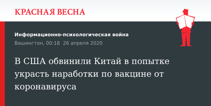 Американские лаборатории, разрабатывающие вакцину против коронавируса, находятся под прицелом китайских хакеров, заявил помощник генпрокурора по вопросам национальной безопасности Джон Демерс 25 апреля, сообщает The Sun.