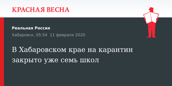 В общей сложности семь школ Хабаровского края были закрыты на карантин в связи с сезонным всплеском заболеваемости ОРВИ и гриппом, сообщили 10 февраля в пресс-службе правительства Хабаровского края.