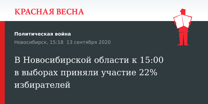 Явка на выборы в Новосибирской области на 15:00 по местному времени (11:00 мск) составила 21,57%, 13 сентября сообщает пресс-служба избирательной комиссии Новосибирской области на официальном сайте органа.