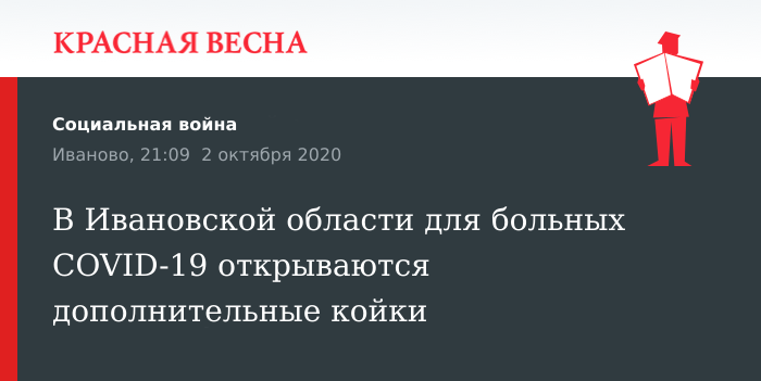 Кроме того, 3 октября будут дополнительно развернуты 140 коек в ГКБ № 4, 100 из них будут оснащены кислородом. Дополнительное количество коек (50 единиц) будет развернуто в Шуе, 30 из них — с кислородом.