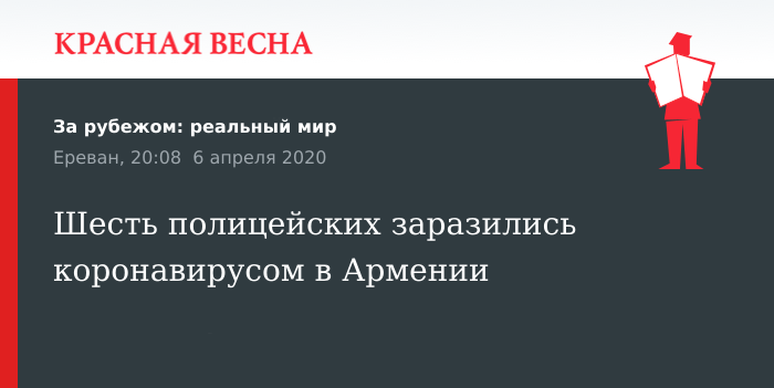Напомним, на данный момент в Армении зафиксировано 833 случая заражения коронавирусом. В стране введен режим чрезвычайного положения, в рамках которого закрыты все образовательные учреждения, отменены общественные мероприятия, а граждане должны находиться дома. За соблюдением режима карантина следят силы полиции Армении, которые регулярно сталкиваются с опасностью быть зараженными коронавирусом.