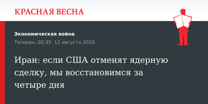Напомним, что в апреле 2015 году ядерное соглашение с Ираном заключили США, Франция, Германия, Великобритания, Китай и Россия. Соглашение предполагает отмену санкций для Ирана в обмен на сокращение страной количества работающих центрифуг для обогащения урана сроком на 15 лет, отказ от обогащения урана выше чем 3,67% по U235, перестройку исследовательского реактора для предотвращения возможности выработки на нем оружейного плутония и вывоз отработанного ядерного топлива из страны, а также предоставление открытого доступа на все ядерные объекты представителей МАГАТЭ (международного агентства по ядерной энергии).