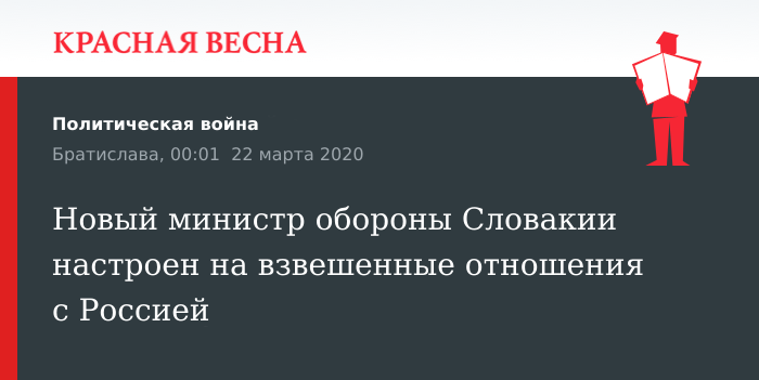 Взвешенные отношения с Россией хочет развивать новый министр обороны Словакии Ярослав Надь. Об этом он заявил 21 марта в интервью газете Pravda.