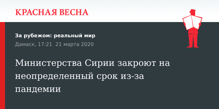 Министерства Сирии закроют на неопределенный срок из-за пандемии