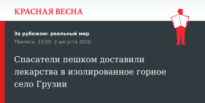 Отряд спасателей пешком доставил срочное лекарство для 75-летнего жителя высокогорного села Грузии, дорога в которое была разбита паводком в районе Рача, 2 августа сообщает Report.