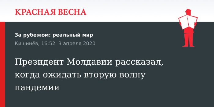 По словам президента Молдавии, осенью 2020 года ряд специалистов прогнозирует вторую волну пандемии коронавирусной пневмонии COVID-19, но к этому времени уже должна быть создана вакцина.