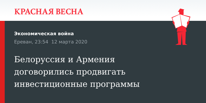 Белоруссия и Армения договорились продвигать инвестиционные программы