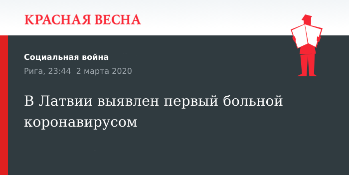 В Латвии выявлен первый больной коронавирусом