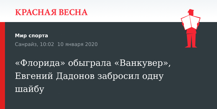 «Флорида Пантерз» на своем льду переиграла «Ванкувер Кэнакс» 10 января в матче регулярного чемпионата НХЛ.
