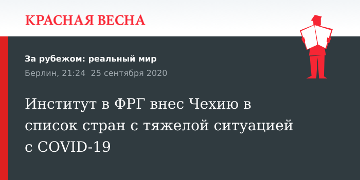 Некоторые регионы в Чехии, Люксембурге и Австрии были включены в список территорий с неблагоприятной эпидемиологической обстановкой германским Институтом Роберта Коха, 25 сентября сообщает пресс-служба института.