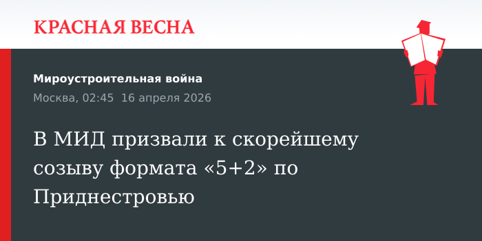 Необходимо скорейшим образом возобновить работу переговорного формата «5+2» по урегулированию приднестровского вопроса, заявил замглавы МИД России Михаил Галузин, 15 апреля сообщают «Известия».