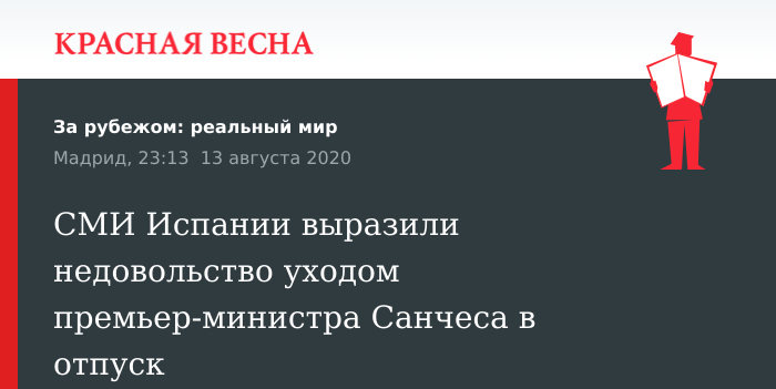 «Почти 50 тысяч умерших от коронавируса, новые вспышки COVID-19, рост безработицы, тяжелая экономическая ситуация (такие события можно сравнить только с положением Испании во времена Гражданской войны 1936–1939 годов) — ничто не показалось Педро Санчесу достаточным основанием для того, чтобы отложить этим летом отпуск», — пишет испанское издание АВС.