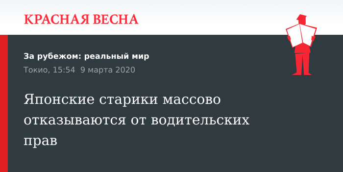 Количество японцев, добровольно отказавшихся от водительских прав, в 2019 году побило рекорд, 9 марта сообщает портал японского издания Jiji Press.