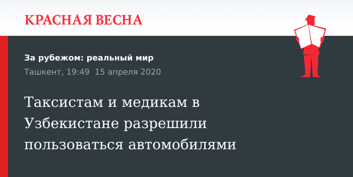 Напомним, 15 апреля министр экономического развития и сокращения бедности Узбекистана Джамшид Кучкаров заявил, что в ближайшее время предпринимателям разрешат пользоваться личными автомобилями. Кроме того, ограничительные меры планируется смягчить и для строительной отрасли.