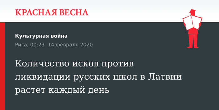 Иск против ликвидации русских школ в Латвии можно подать в ЕСПЧ до 29 февраля. Координаторы штаба защиты русских школ упростили процедуру подачи иска и сделали онлайн-анкету. Активисты ожидают значительного увеличения обращений.