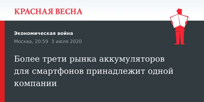 Более трети рынка аккумуляторов для смартфонов принадлежит одной компании