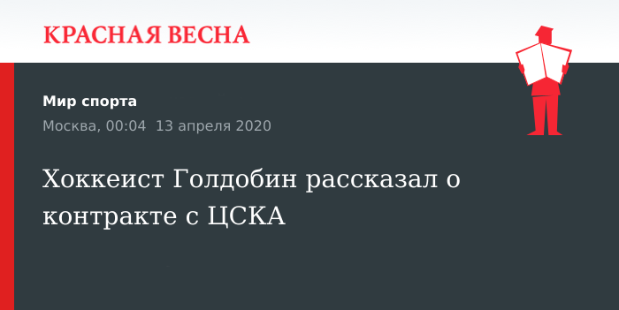 Свое решение подписать двухлетний контракт с московским ЦСКА прокомментировал хоккеист Николай Голдобин, 12 апреля сообщает американский журналист Рик Даливал в социальной сети Twitter.