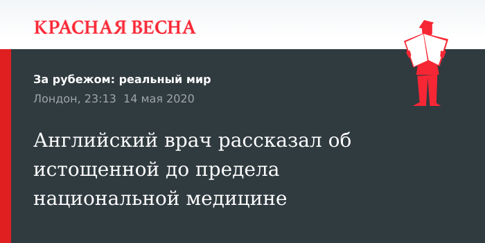 У Великобритании не было ни материальных резервов, ни плана на случай обострения эпидемиологической обстановки, заявил врач Национальной службы здравоохранения Англии Малкольм Кендрик 14 мая в интервью телеканалу RT.